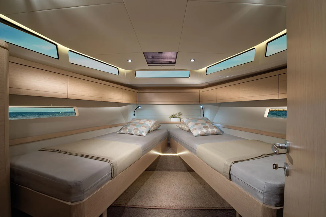 2 kabinli tekne geniş salonu ve güneş ışığından azami faydalanmayı hedefleyen geniş camları ile klasik Greenline fizyolojisini taşıyor. Hybrid seyir sürati 6.5 knot ‘a kadar ulaşırken diesel makine ile 20 knot süratı geçen bir gövde alt yapısına sahip.4 kişilik kabin kapasitesi dışında salonda yatak olabilen oturma grubu sayesinde 6 kişilik geceleme imkanı da veriyor.GL 36 da klima , hybrid donanım, boy buzdolabı, seyir elektroniği, baş pervane standart olarak sunuluyor.