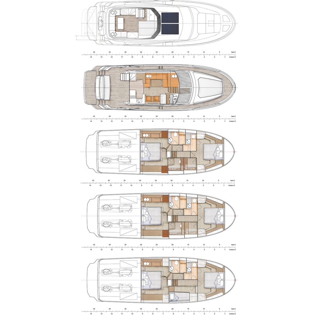Greenline 45 Fly, hem etkileyici motor seçeneklerinin çeşitliliği hem de gömme dolaplı son derece lüks iki ebeveyn kabini veya iki geniş banyolu üç kabin yerleşim düzeni ile sektöründe benzersizdir.